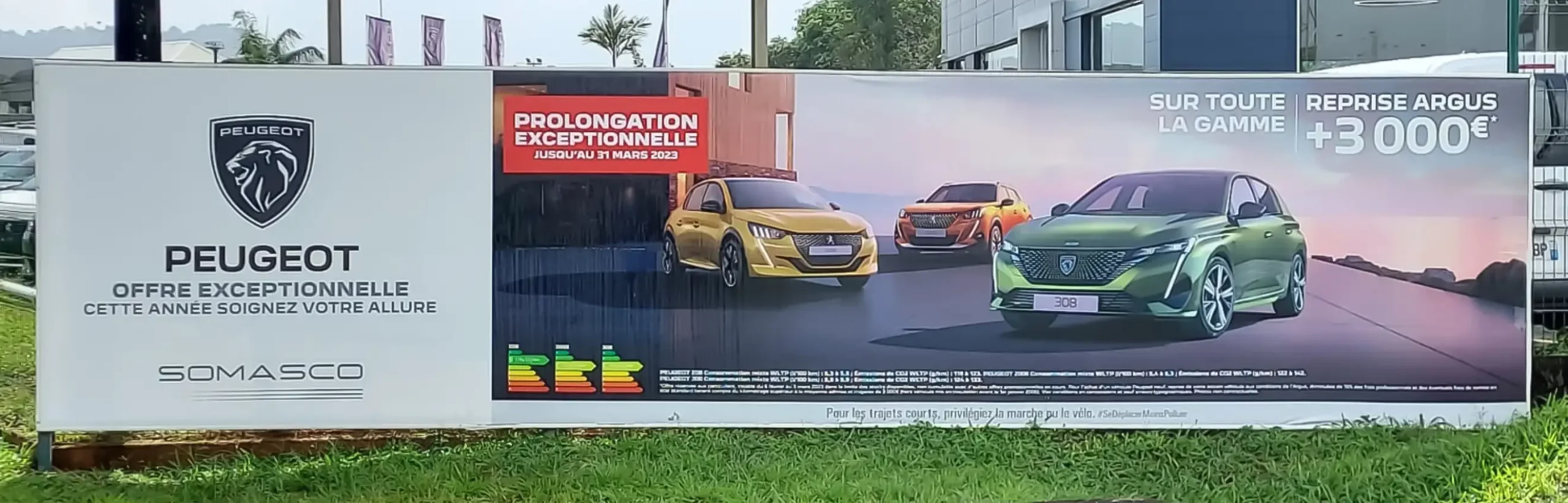 Les affiches sont imprimées sur un papier 120 gr/m2 spécialement conçu pour l’extérieur et les contraintes climatiques en zone tropicale. Nous garantissons la qualité de l’impression durant toute la durée d’une campagne publicitaire classique.